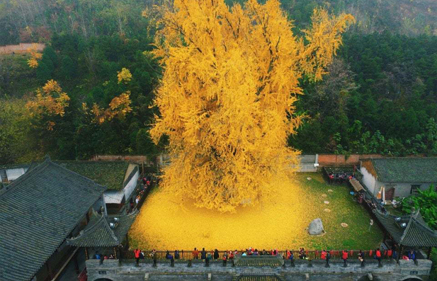 W buddyjskiej świątyni Gu Guanyin, położonej w górach Zhongnan w prowincji Shaanxi w Chinach, rośnie ponad 1400-letnie drzewo Ginkgo biloba, które jest żywym świadkiem historii i duchowym symbolem tego miejsca.